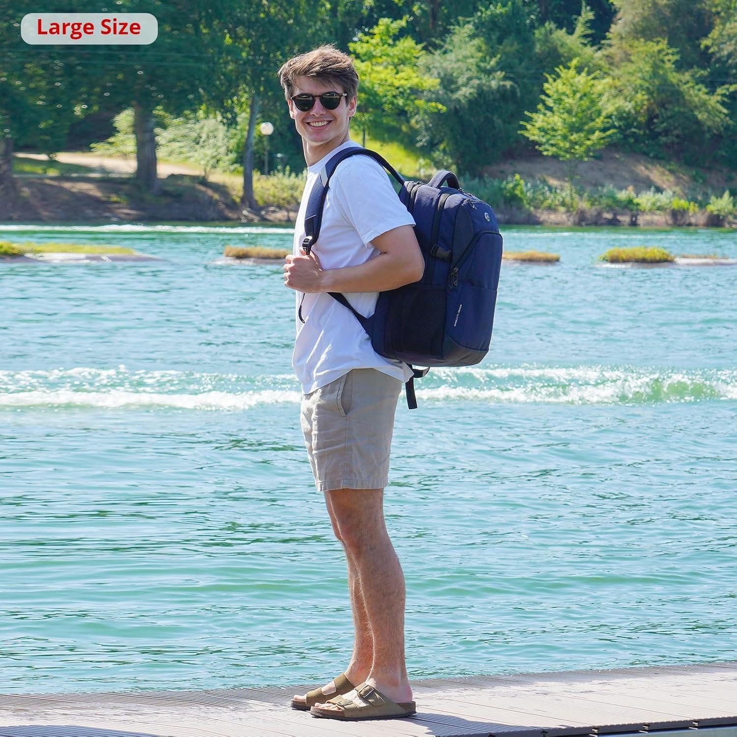 COLLEGE BACKPACK WITH LOTS OF STORAGE SPACE: A separate laptop compartment holds a 16-inch laptop. A spacious organizer compartment for everyday essentials and tech-electronic accessories. The front compartment of this men's backpack features multiple pockets and pen pockets to keep your belongings organized and easy to find.