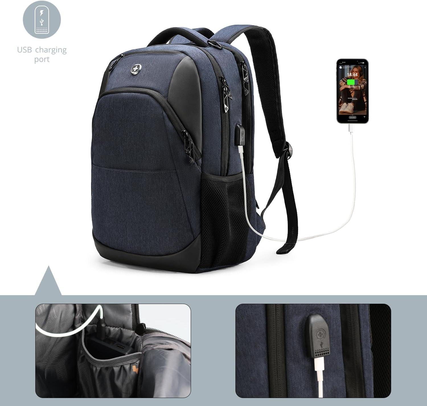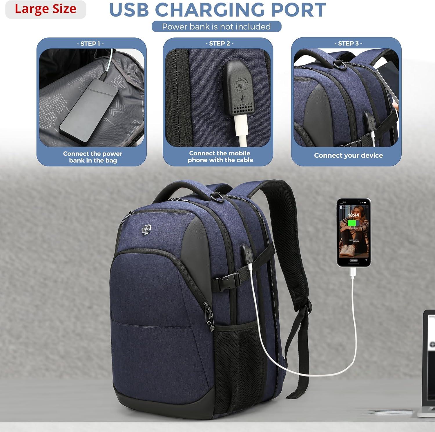 INTEGRATED USB CHARGING PORT: Laptop backpack with USB charging port, offering quick access to charge your electronic devices such as smartphones, tablets, kindles and all other USB devices on the go while using them at the same time. A powerbank is not included. A special powerbank is not required.