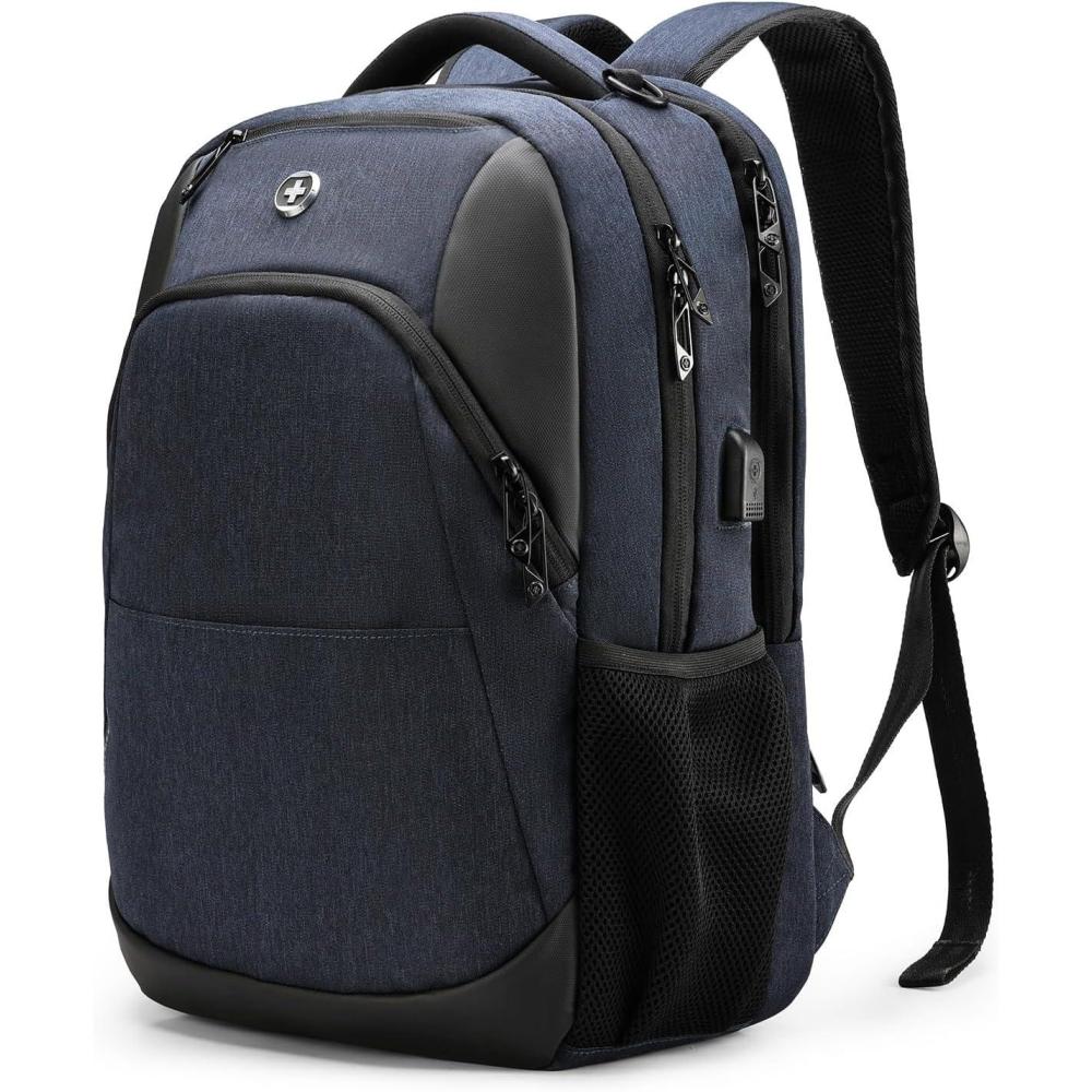 Swissdigital Design Business Laptop Backpack, College Laptops Backpack with USB Charging Port for Men and Women Fits 16 Inch Notebook, Mauve Grey | SD1670-05(Blue)