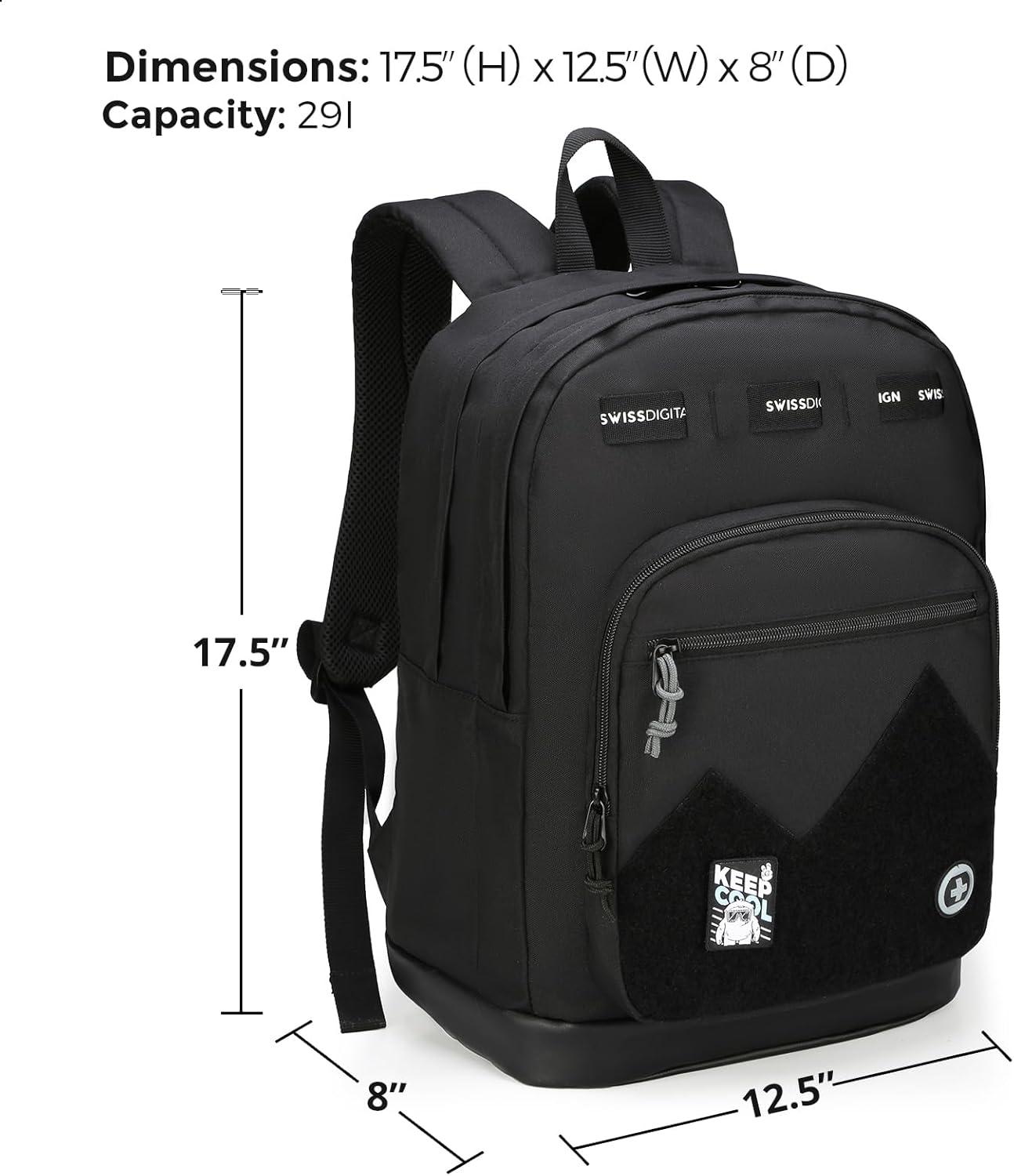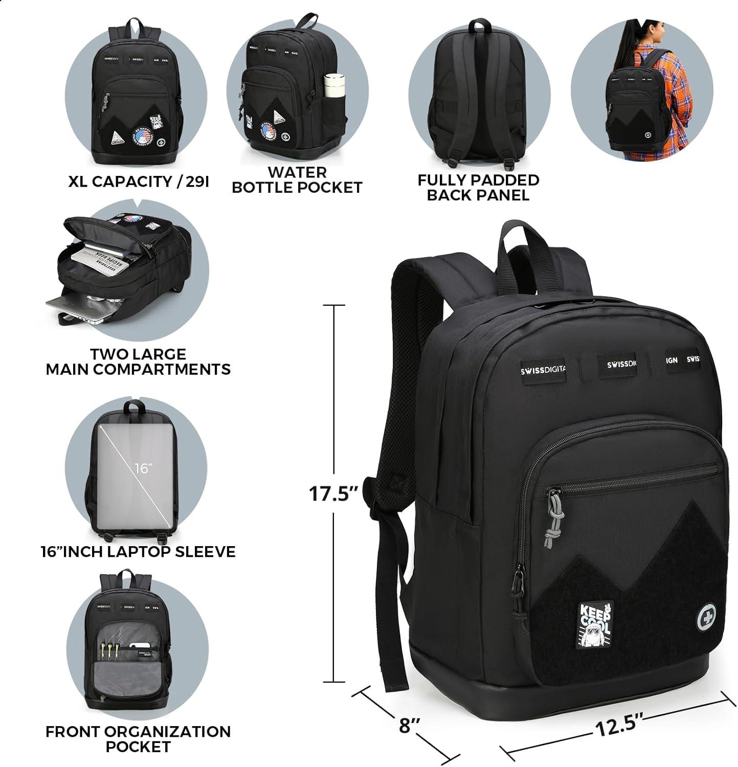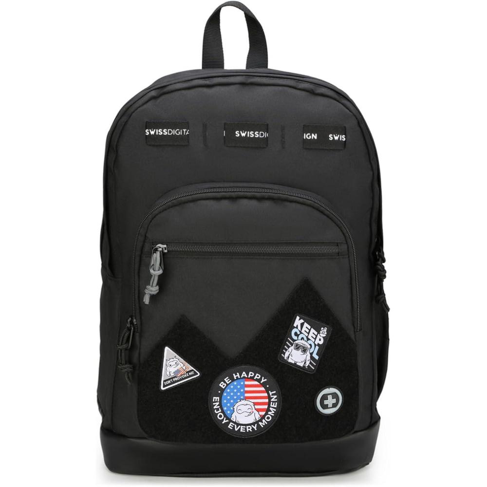 imageSwissdigital Design Cool Backpack Stylish School Laptop Backpack with Fun Personalized Patches Fits 16 Inch Notebook Travel Bag Pefect for Boys ampamp Girls Pale Pink BERIKON  Includes 3 PatchesBlack
