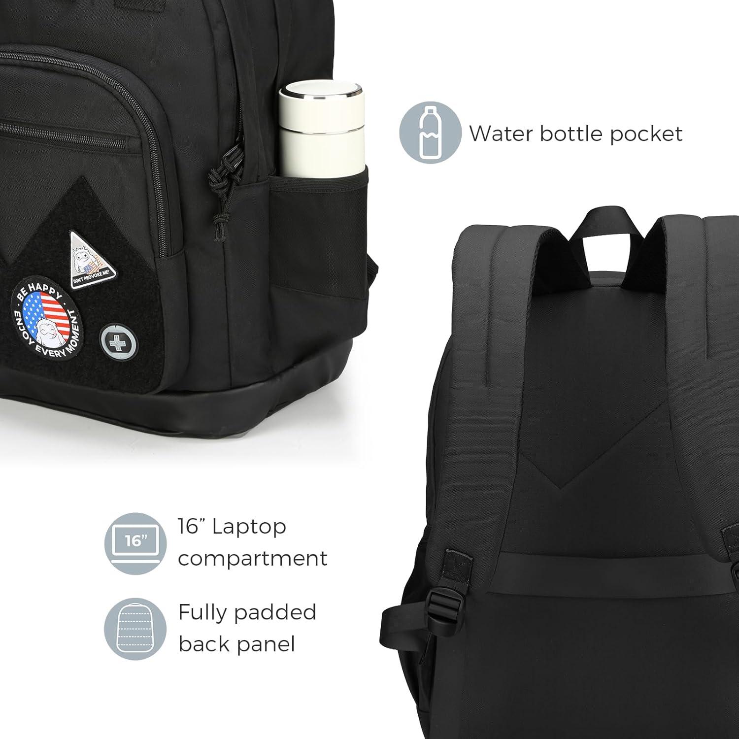 STYLISH AND CUSTOMIZABLE: The 29L size provides space for all of your belongings and includes a fully padded back panel for extra comfort and water bottle pocket on the side. Customize your backpack with the free patches to make it your own style!