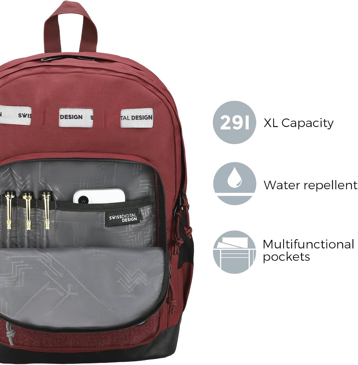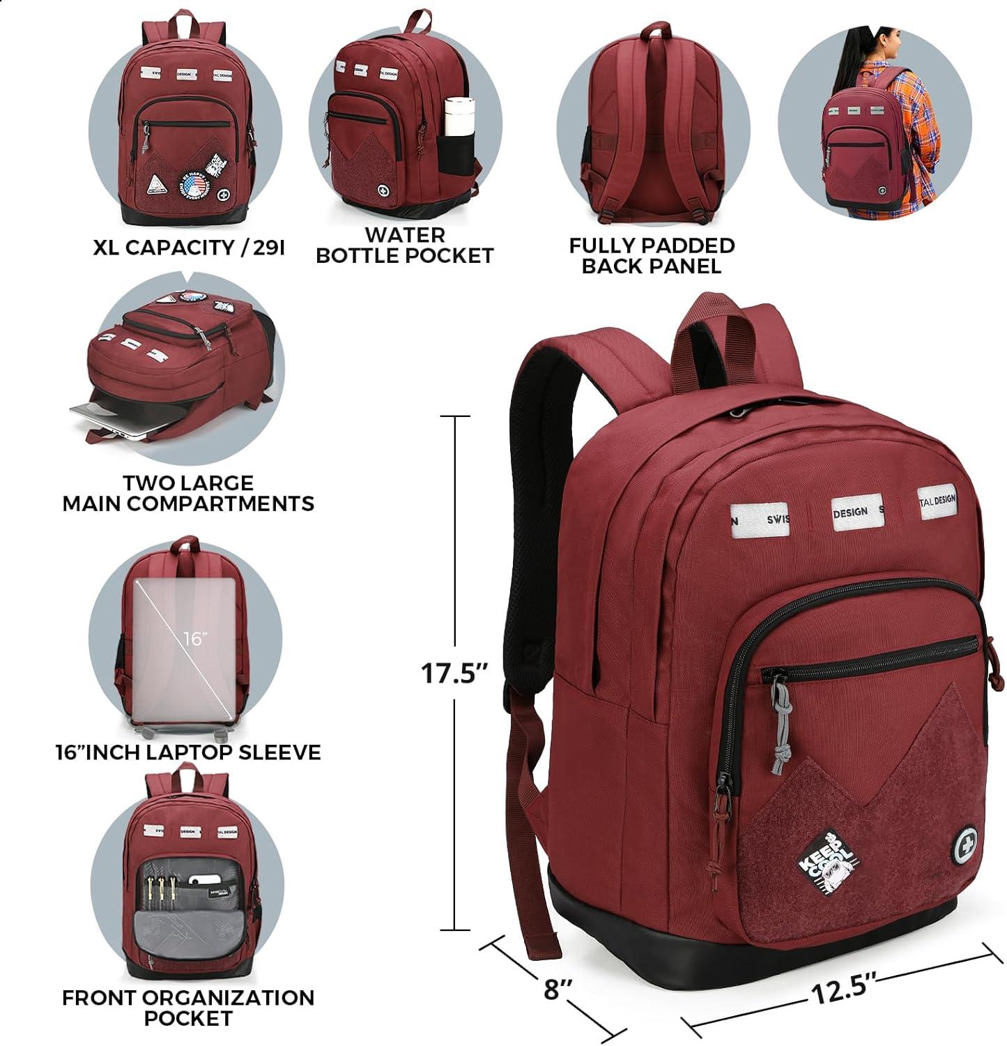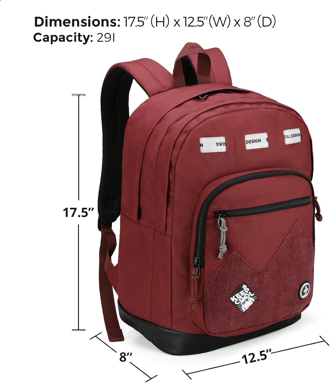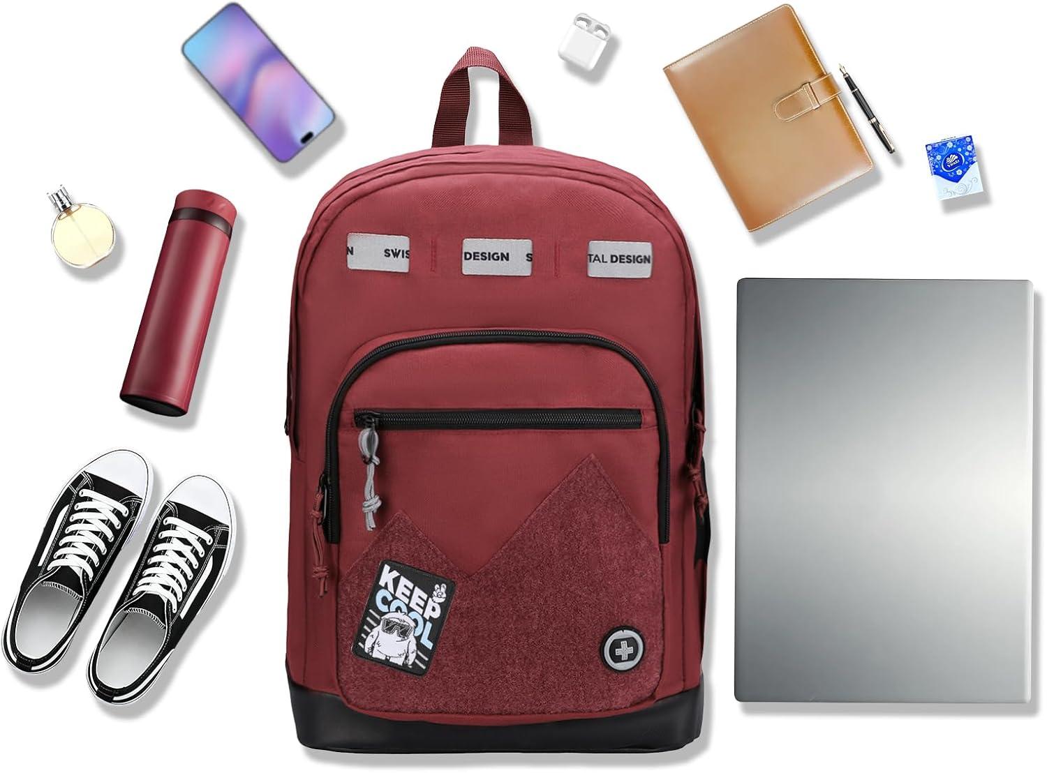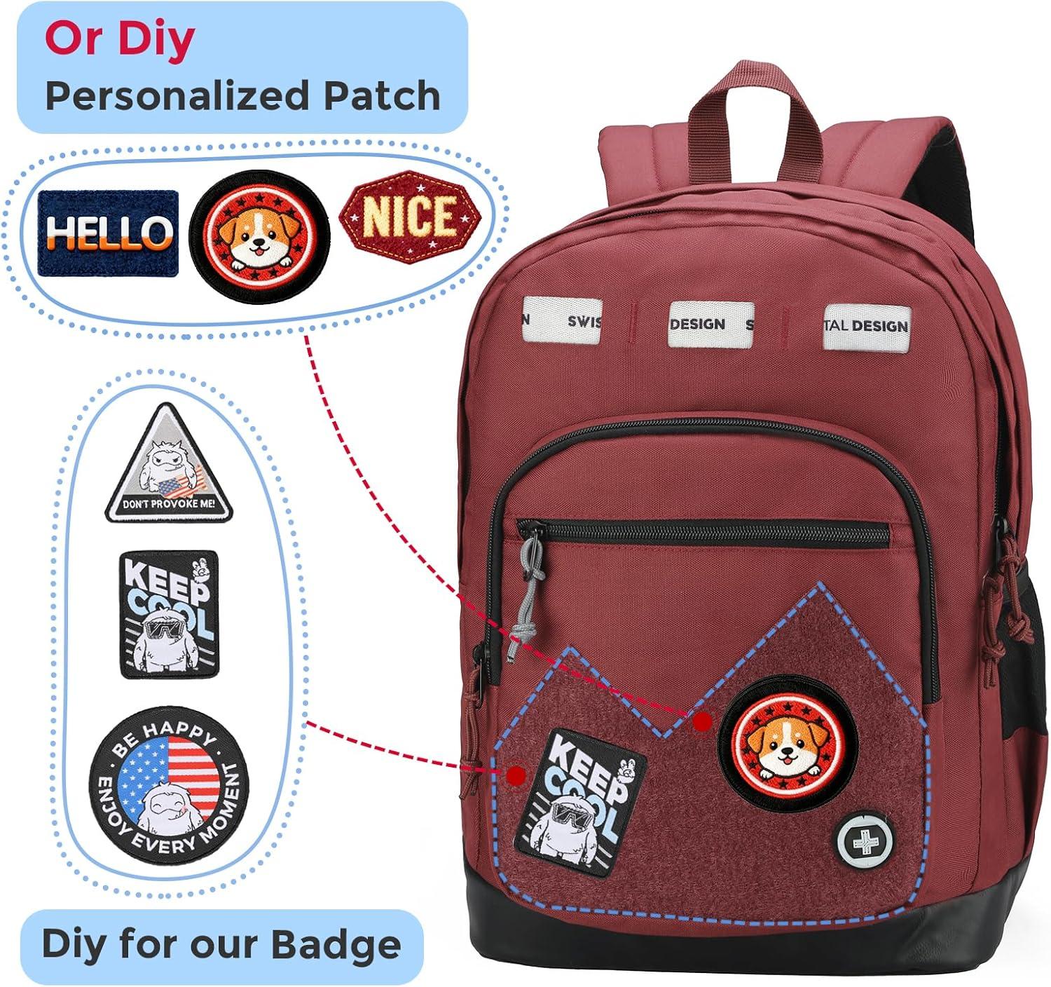 Swissdigital Design Cool Backpack, Stylish School Laptop Backpack with Fun Personalized Patches Fits 16 Inch Notebook, Travel Bag Pefect for Boys & Girls, Pale Pink| BERIKON – Includes 3 Patches(Burgundy)