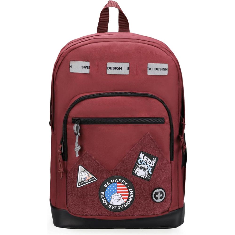 imageSwissdigital Design Cool Backpack Stylish School Laptop Backpack with Fun Personalized Patches Fits 16 Inch Notebook Travel Bag Pefect for Boys ampamp Girls Pale Pink BERIKON  Includes 3 PatchesBurgundy