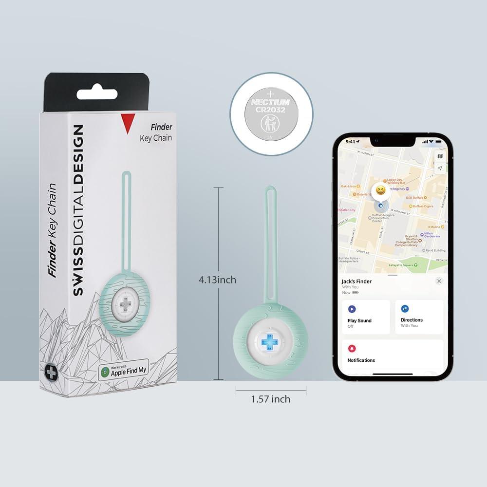 Swissdigital Design Key Finder Locator Works Apple Find My Bluetooth, Tracker Works with Apple Find My for Backpacks, Keys and Personal Items