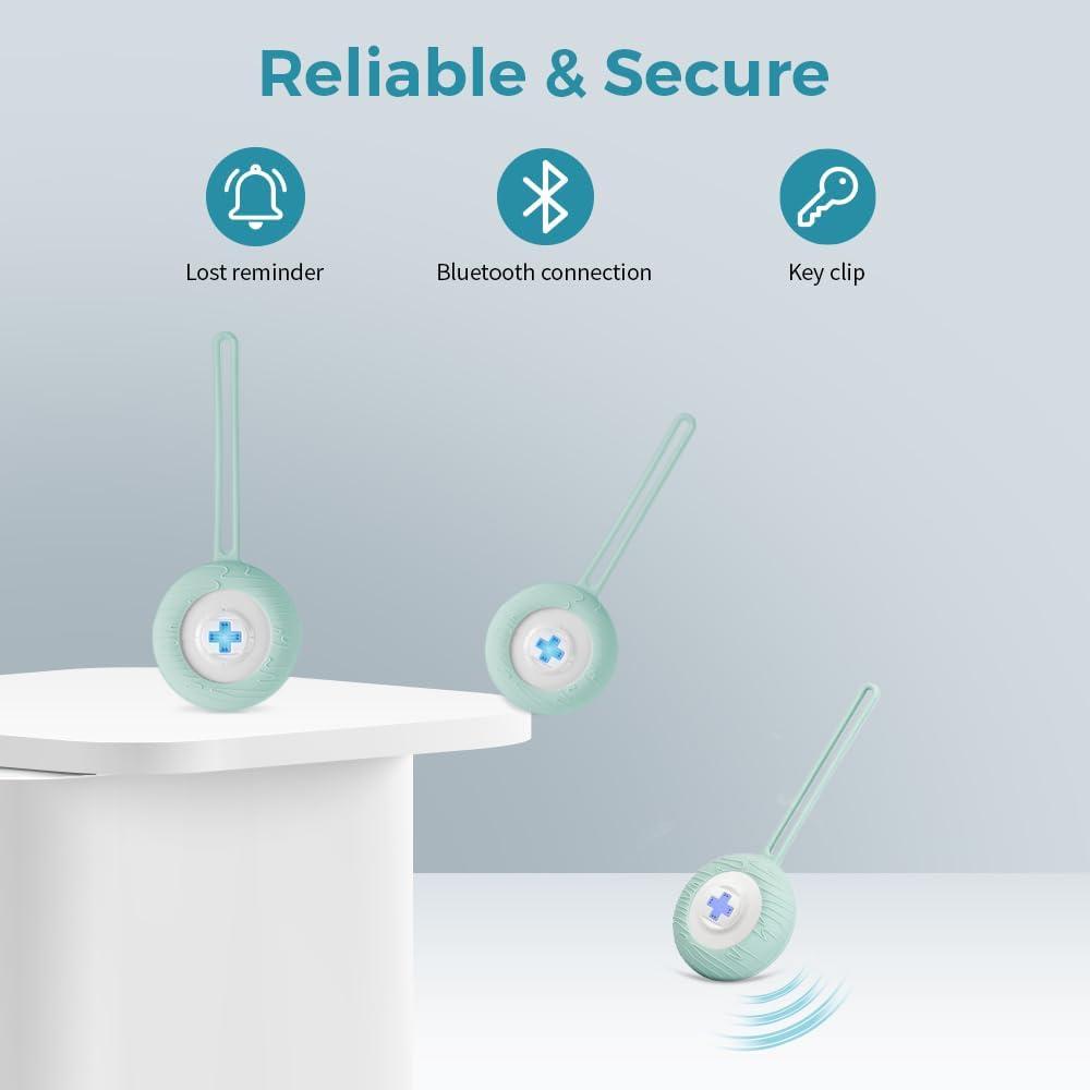 Swissdigital Design Finder Keychain, Bluetooth Tracker, Keys Finder and Item Locator for Keys, Bags and More, Bluetooth Locator for Personal Items Works with Apple Find My, Black (SD9508F)(2). Glacier Green- 4Pack)