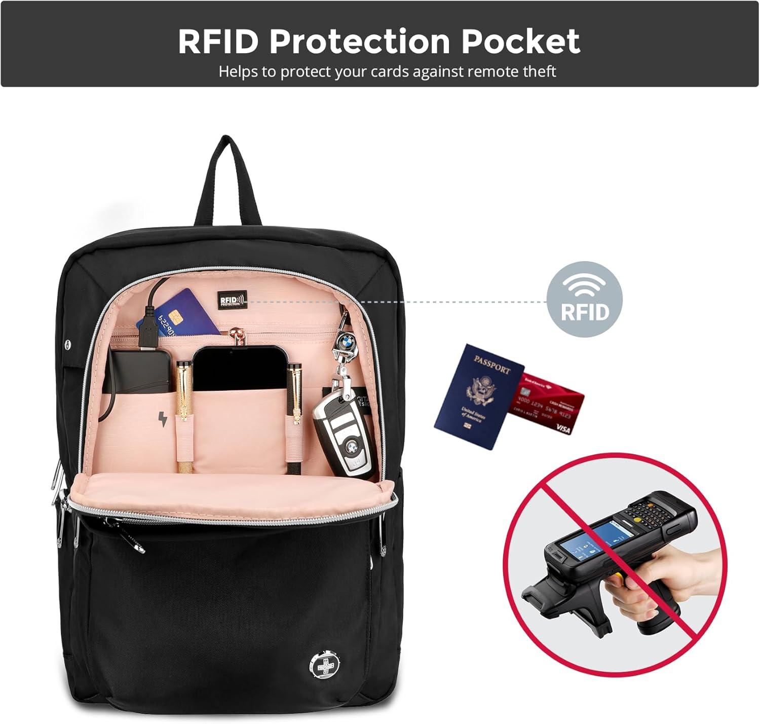 STYLISH PROTECTION: Women backpack made with high quality materials and Swiss Design to provide both style and protection for your belongings. The velvet lined sunglass pocket gives your sunglasses comfort and protection. An RFID pocket protects your credit cards, driver's licenese and passport from electronic snooping