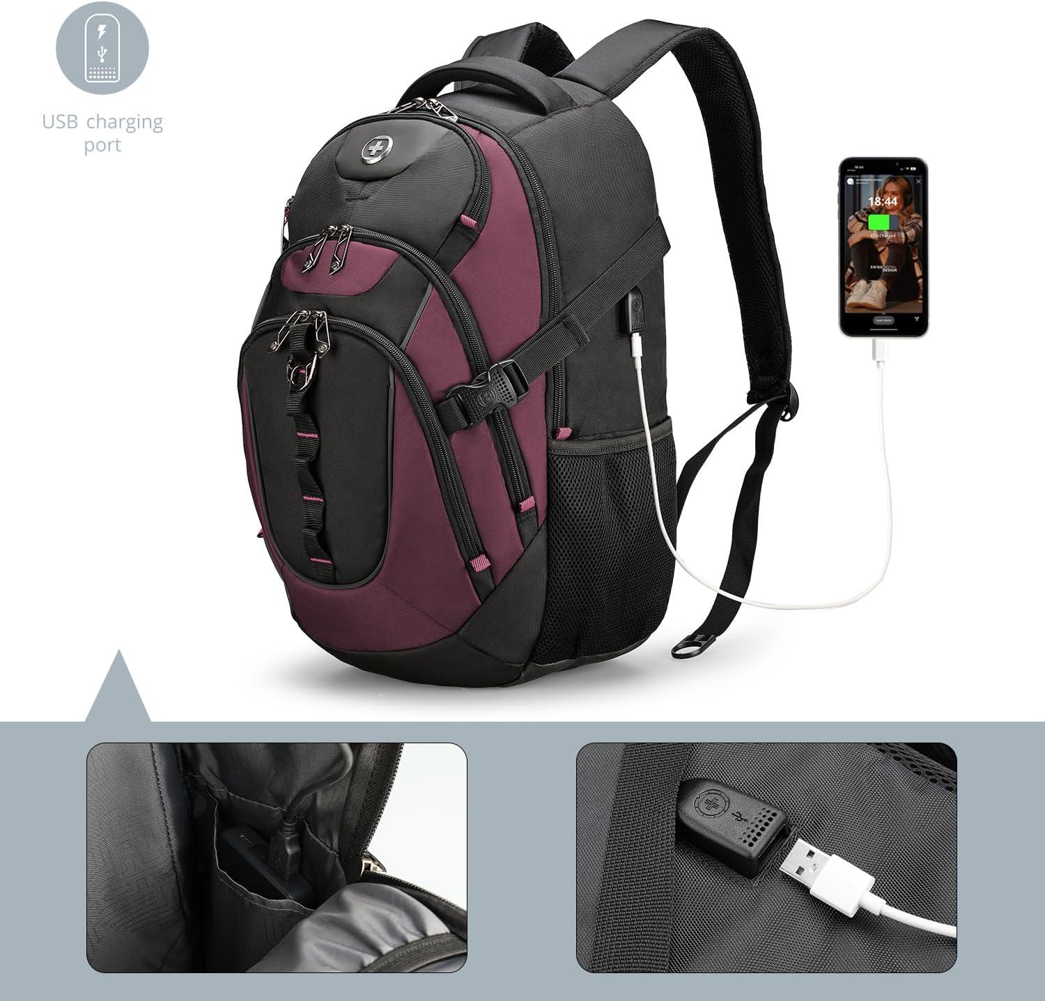 imageSwissdigital Design Laptop Backpack with USB Charging Port Travel Backpack Fits 156 inches Computer 31L College School Backpack for Men BlueBlack  SD803Angola RedBlack