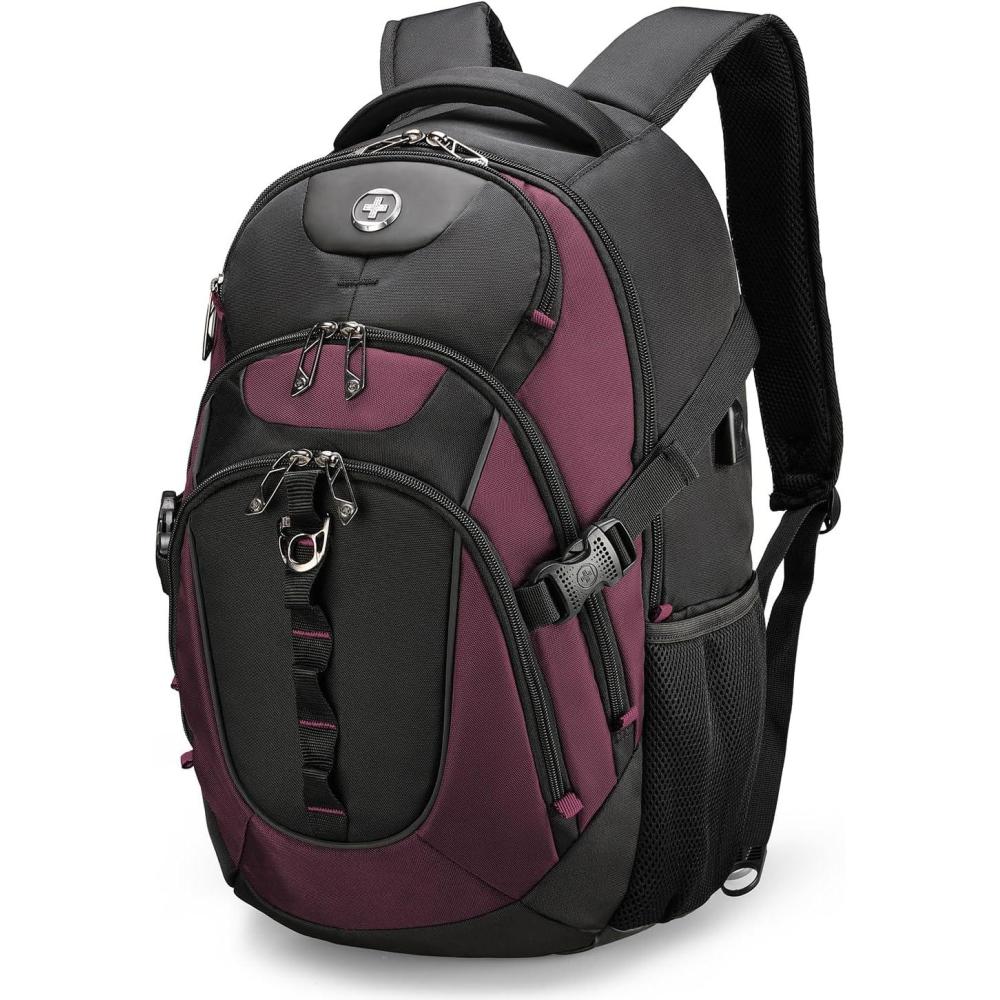 imageSwissdigital Design TSA Laptop Backpack Mens USB Charging Port Large Capacity Business Travel Backpack Black With Apple Find My Network BlackRed  J16BTFB41BlackRed With Sdd Finder