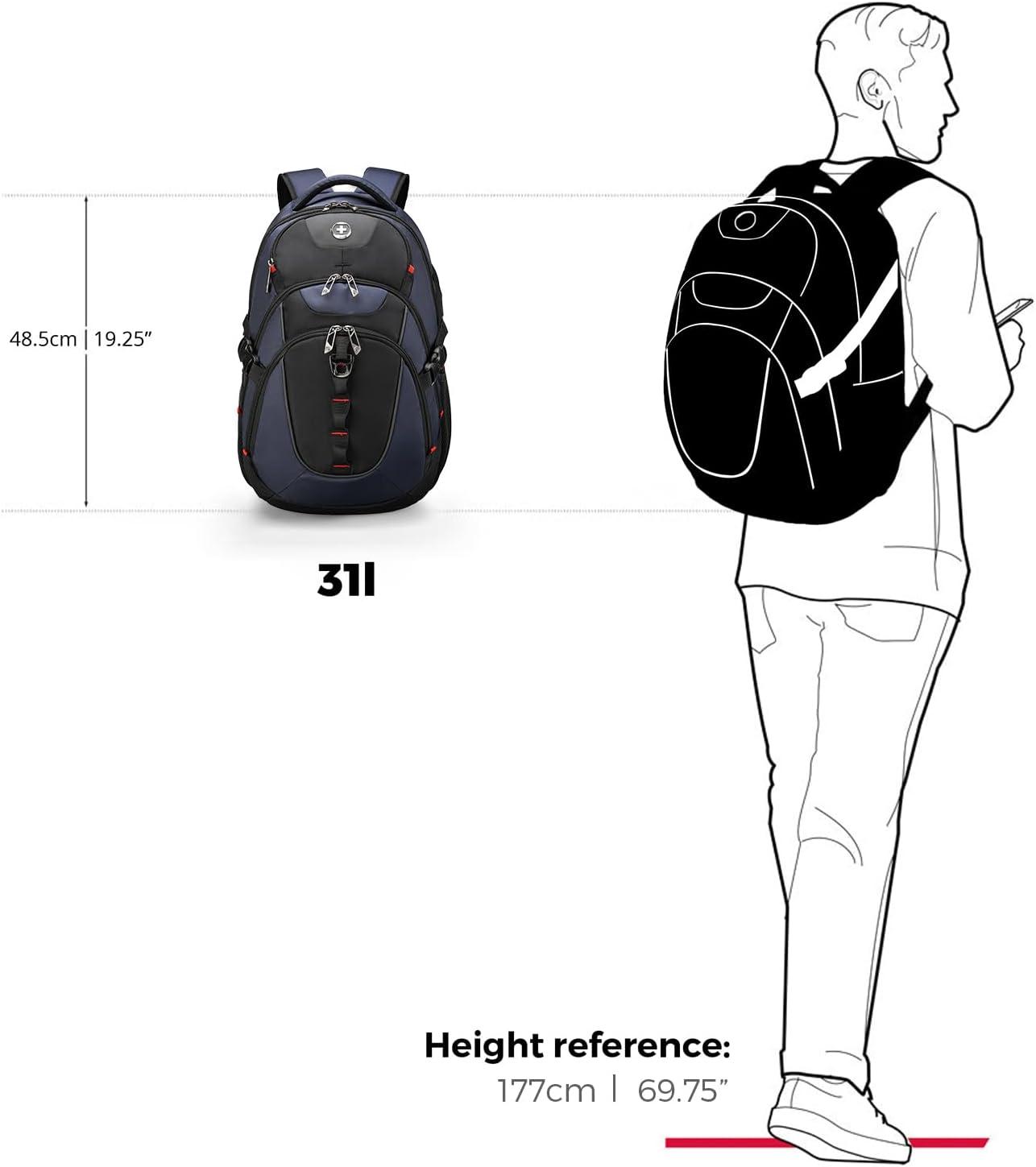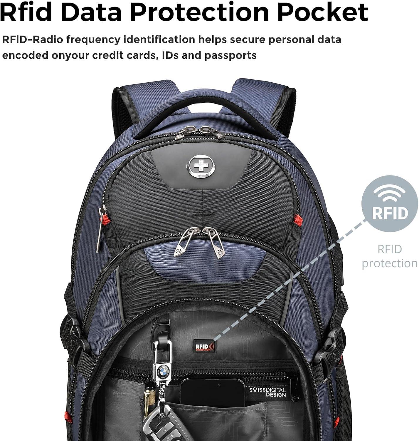 Swissdigital Design Laptop Backpack with USB Charging Port, Travel Backpack Fits 15.6 inches Computer, 31L College School Backpack for Men, Blue/Black | SD803(Black-finder)