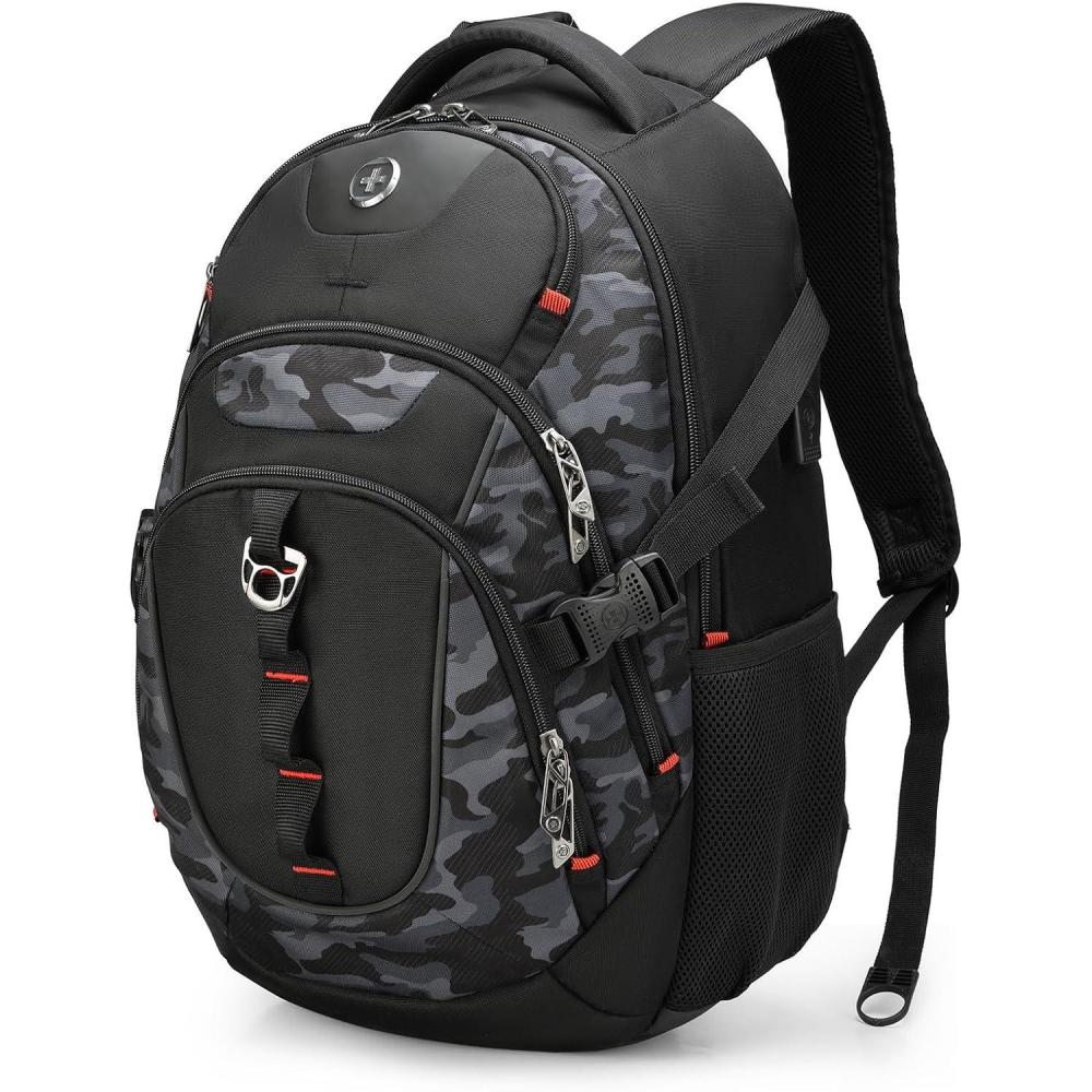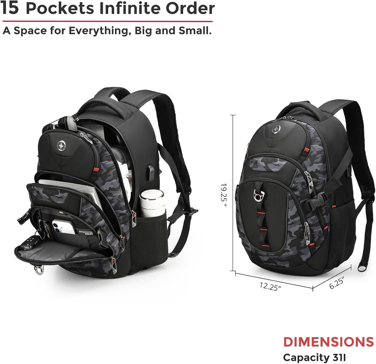 imageSwissdigital Design Laptop Backpack with USB Charging Port Travel Backpack Fits 156 inches Computer 31L College School Backpack for Men BlueBlack  SD803Gray Camo