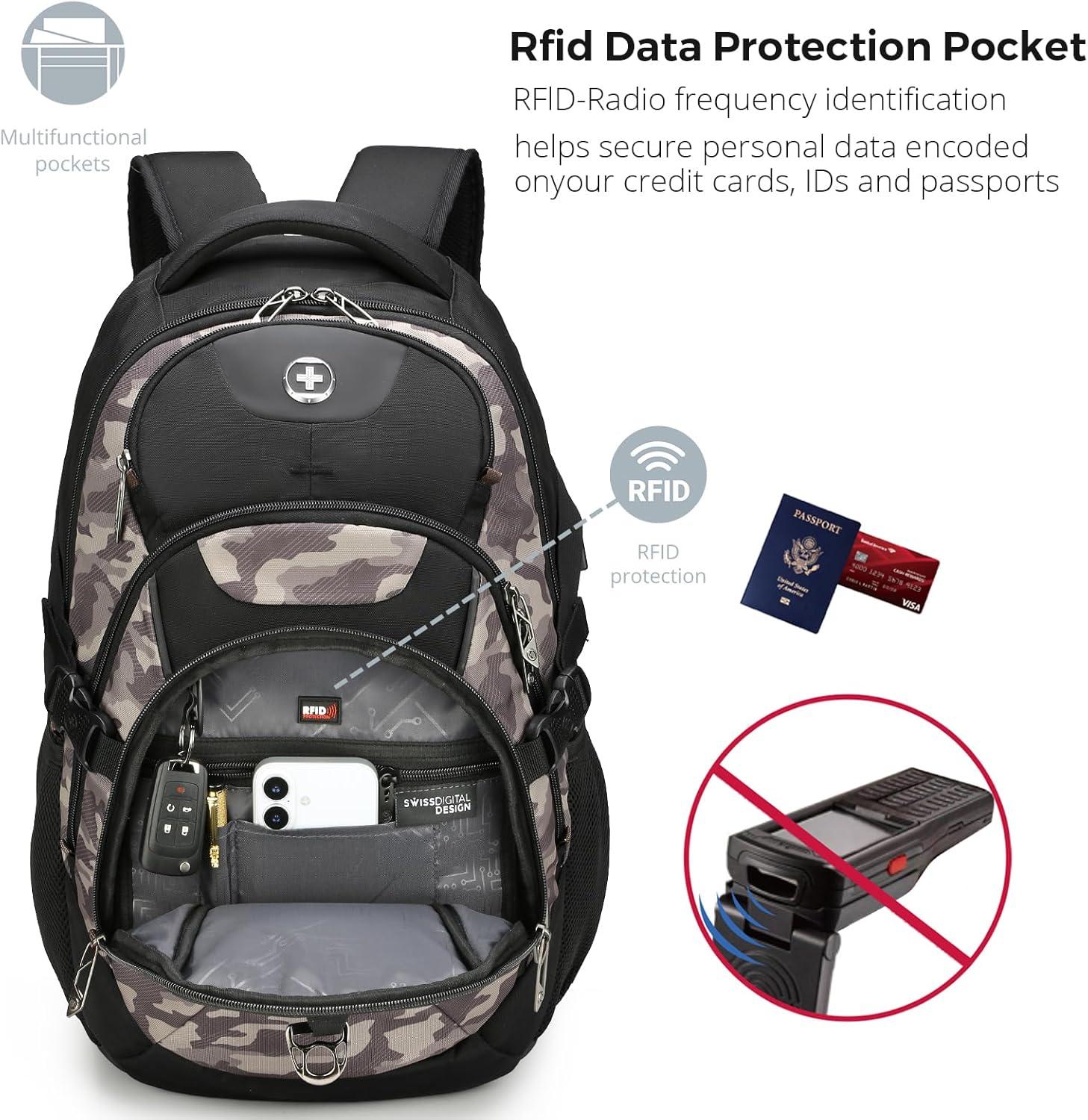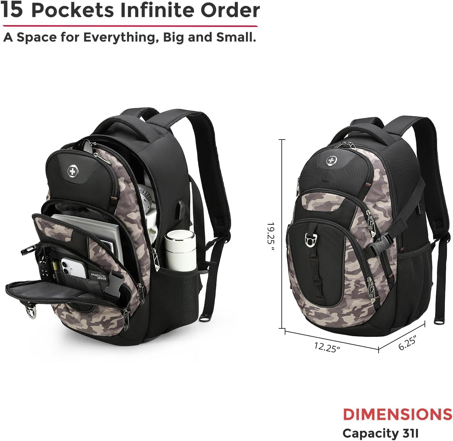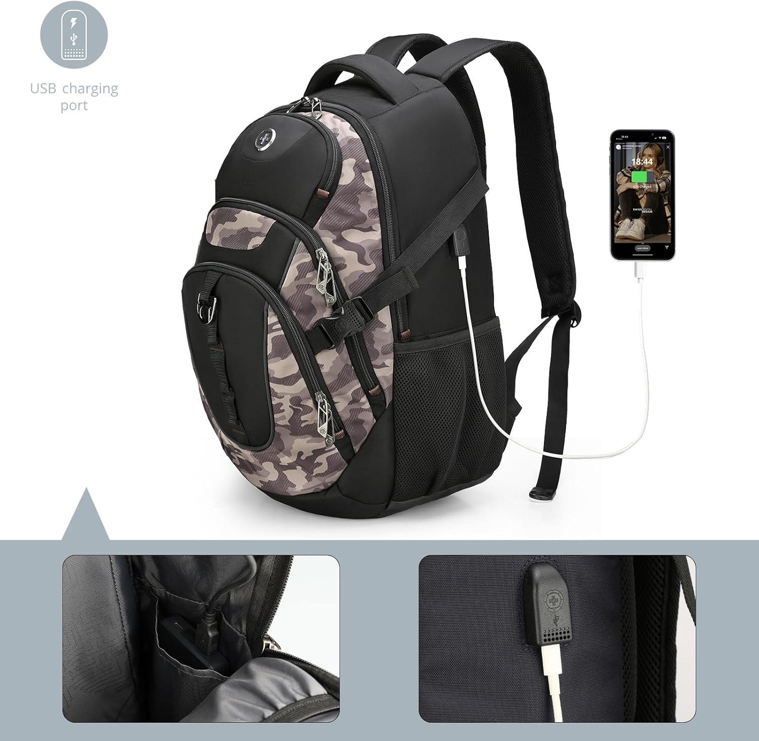 imageSwissdigital Design Laptop Backpack with USB Charging Port Travel Backpack Fits 156 inches Computer 31L College School Backpack for Men BlueBlack  SD803Khaki Camo