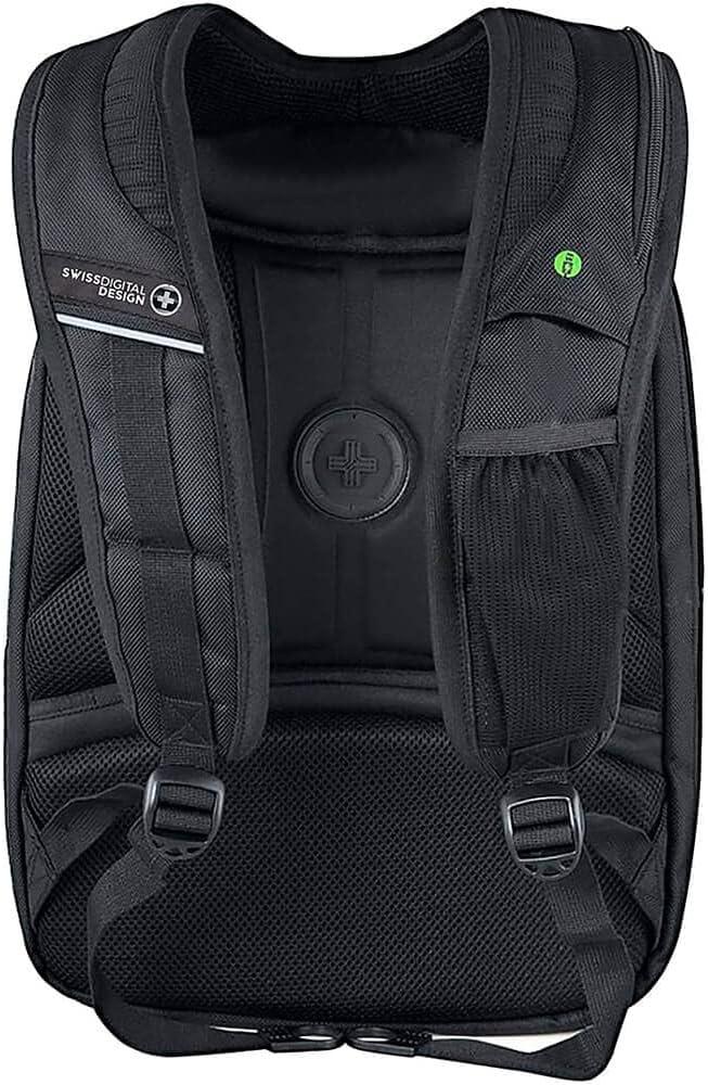 Swissdigital Design TSA Laptop Backpack Men’s USB Charging Port Large Capacity Business Travel Backpack Black| With Apple Find My Network Black/Red | J16BTFB-41(Black/Green)