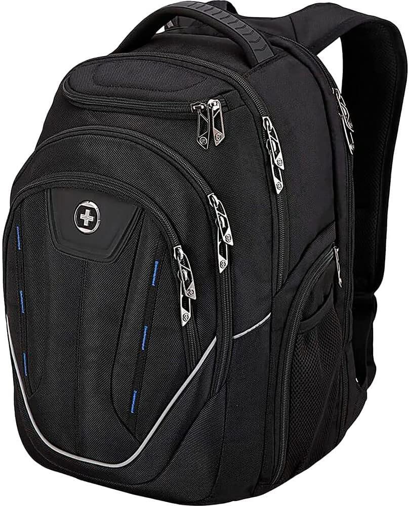 Swissdigital Design TSA Laptop Backpack Men’s USB Charging Port Large Capacity Business Travel Backpack Black| With Apple Find My Network Black/Red | J16BTFB-41(Black/Blue)