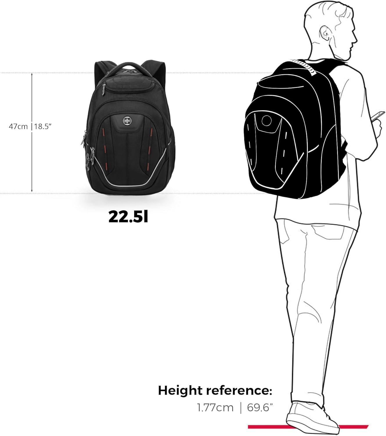 Add-A-Bag system of men's short-term travel backpack, can be set to the handle of the carry-on luggage, wider U-shaped shoulder straps to reduce the load, thickened and widened carry handle, breathable back cushion, suitable for weekend trips, short business trips, make your journey more comfortable. RFID pocket helps to protect your personal data (such as credit cards, passports and driver's licenses) from RFID scanner access.